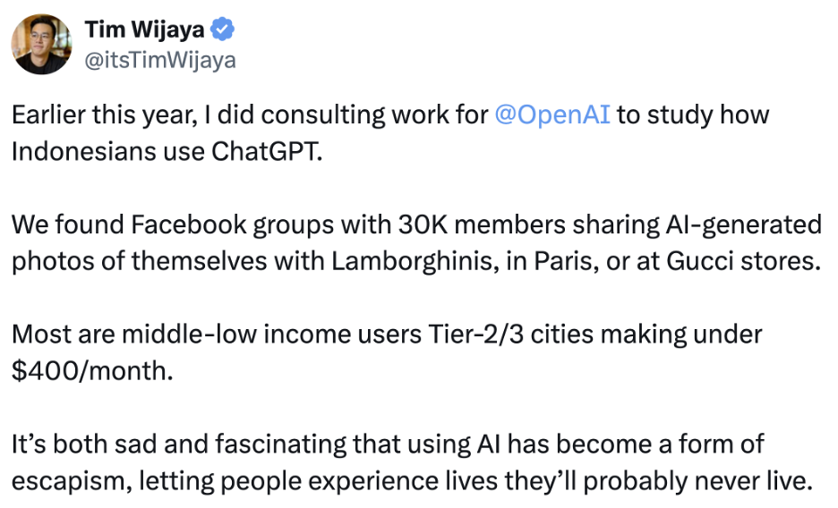 Moreover, AI is already piercing social interactions in more obvious ways. Browse Facebook for even 10 minutes and you will see similar online interactions to what Tim describes here: